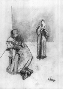 Kohleskizzen von Theaterproben
